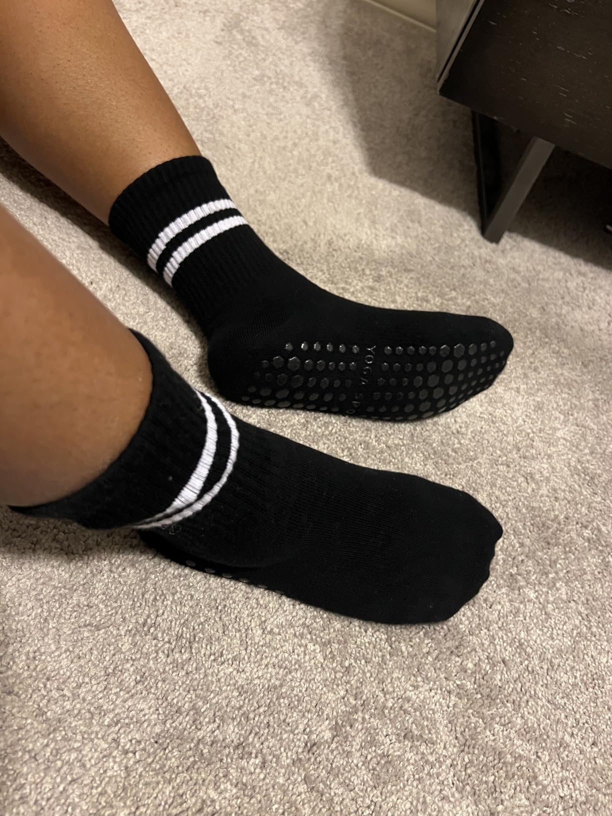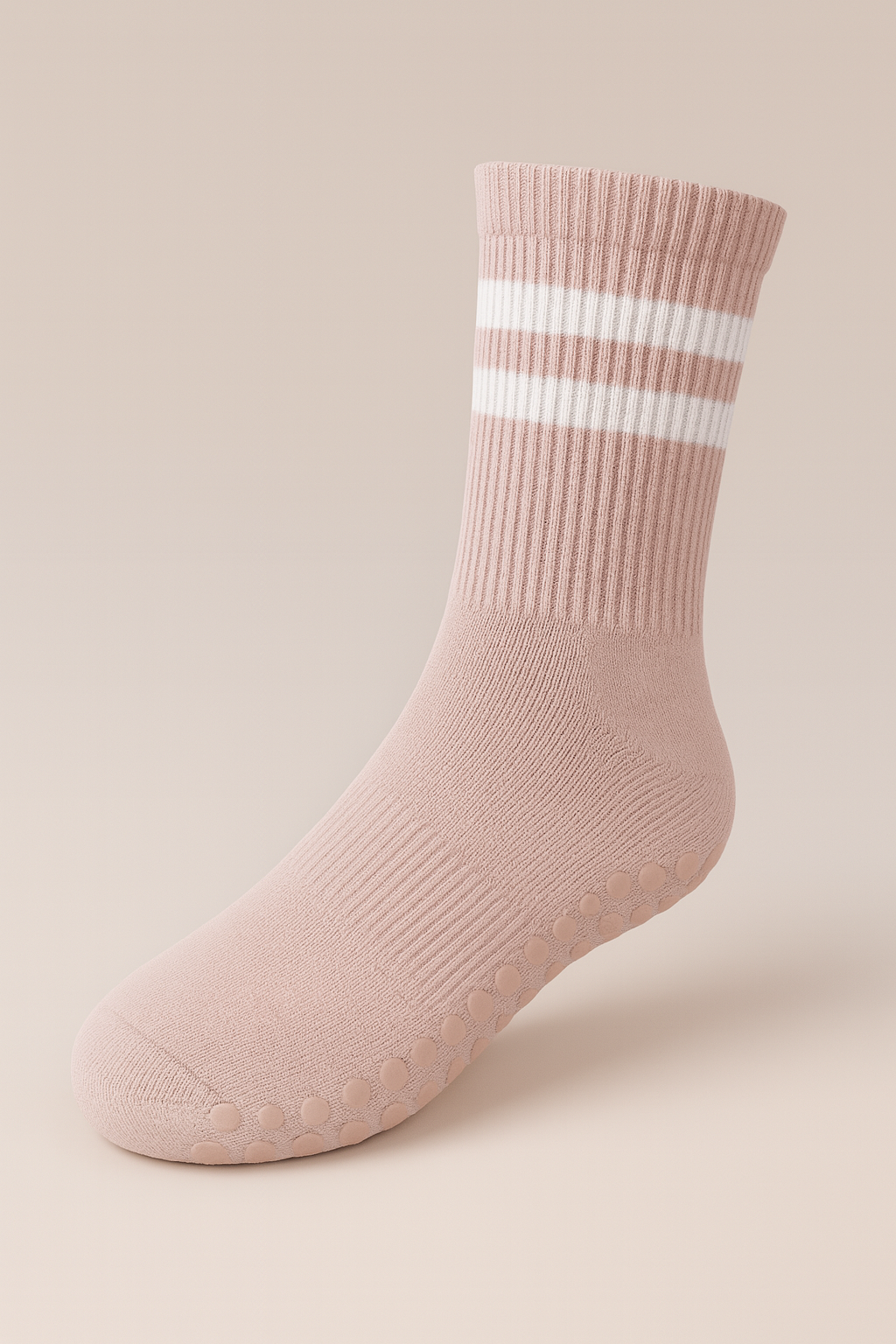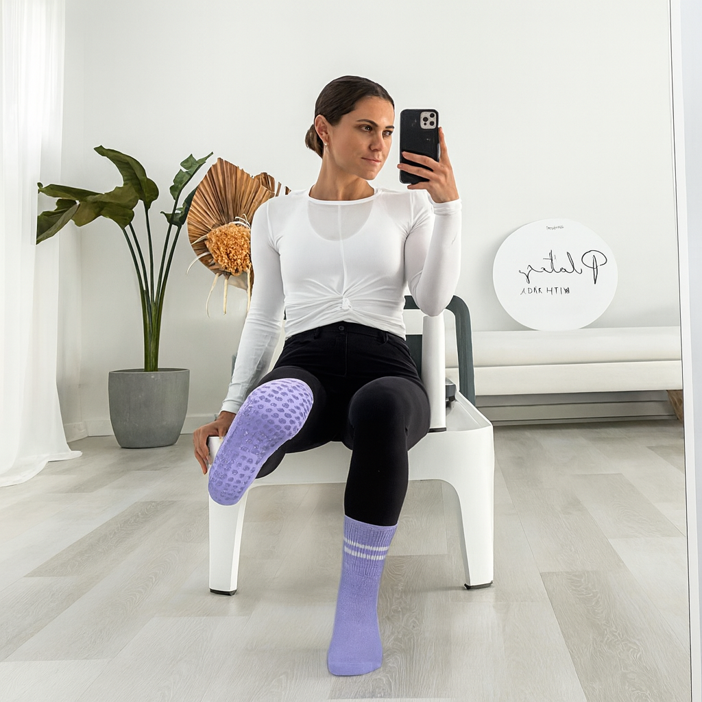 Nos chaussettes de Pilates offrent une adhérence antidérapante pour plus de stabilité, un tissu respirant pour un confort optimal et une protection hygiénique sur tapis ou Reformer. Contrairement aux chaussettes classiques qui glissent, elles assurent fluidité et confiance à chaque séance, sans compromis sur l’élégance.